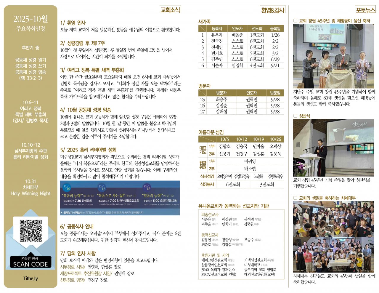 오늘 저희 교회에 처음 방문하신 분들을 예수님의 이름으로 환영합니다.