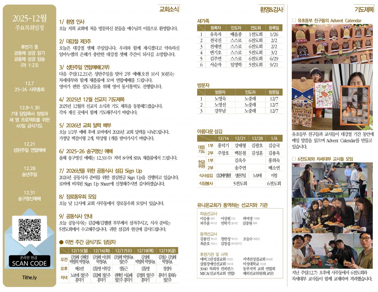 2025년 12월의 선교지 소식과 기도 제목을 동봉해드렸습니다.