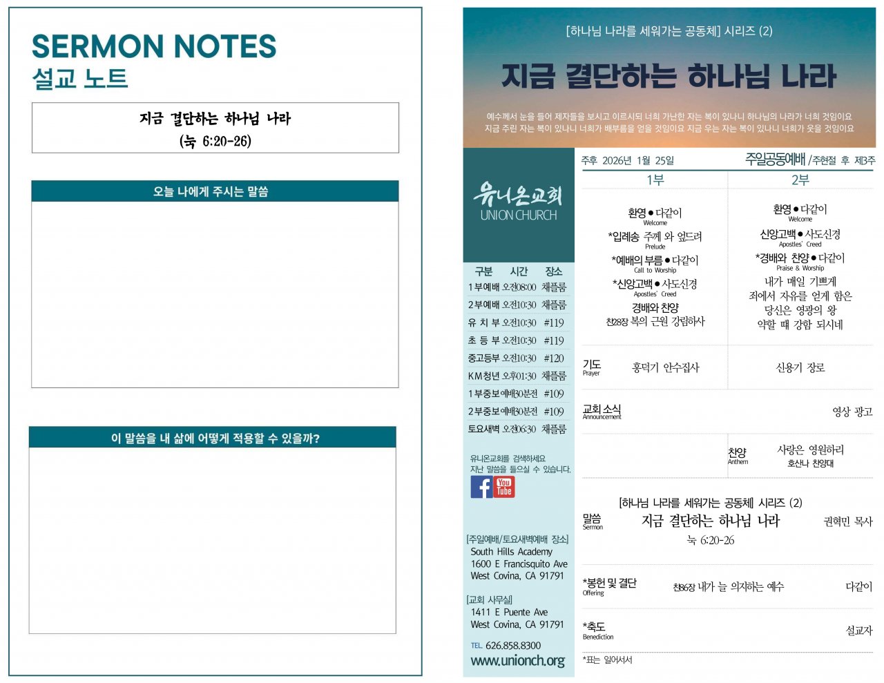 다음 주일 1/2부 예배 때 서울신학대학교 오성욱 교수님께서 말씀을 전해주실 예정입니다.