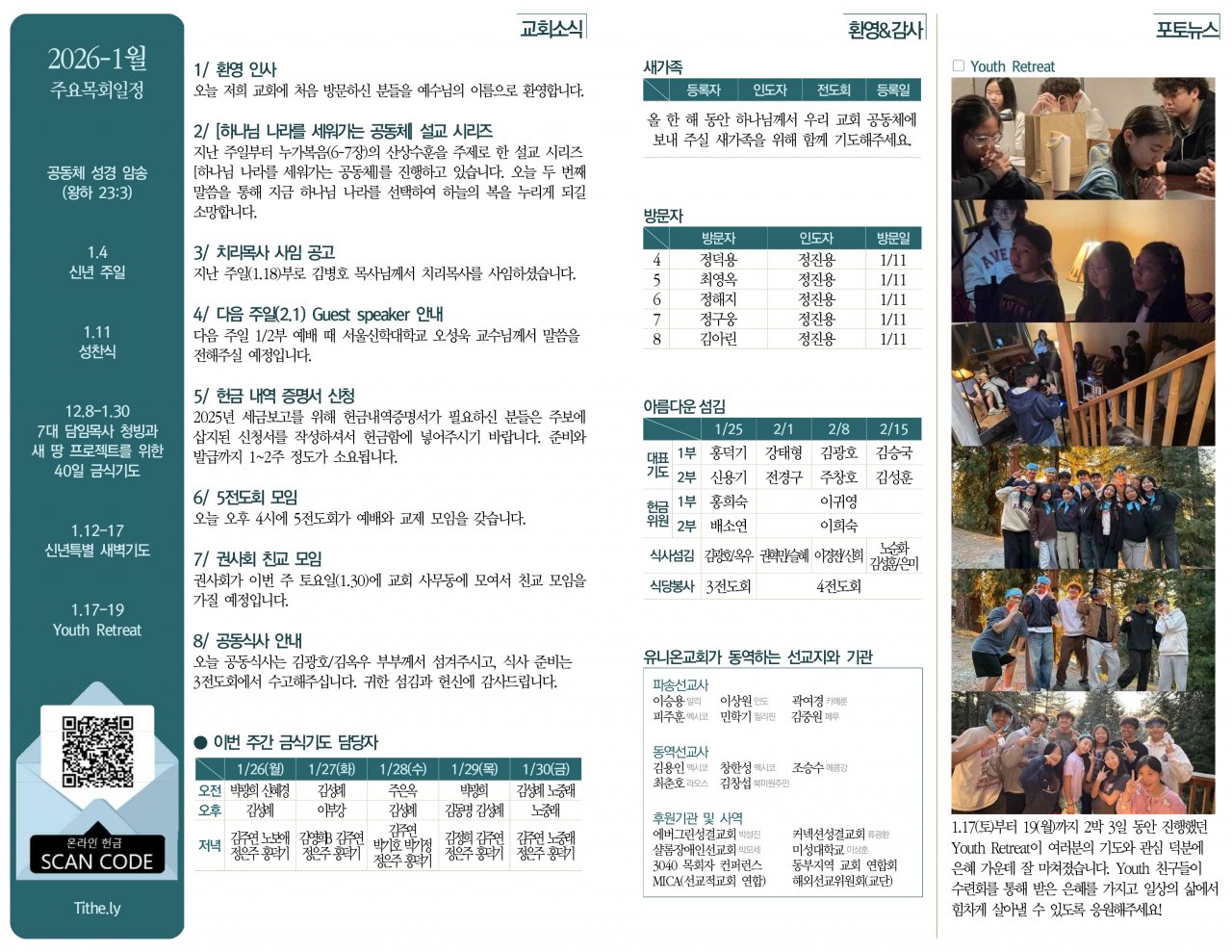 오늘 저희 교회에 처음 방문하신 분들을 예수님의 이름으로 환영합니다.