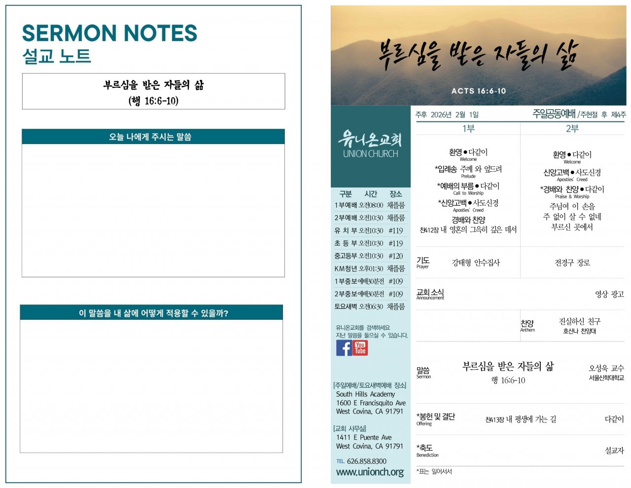 오늘 1/2부 예배 때 귀한 말씀을 전해주시는 서울신학대학교 오성욱 교수님께서 감사드립니다.