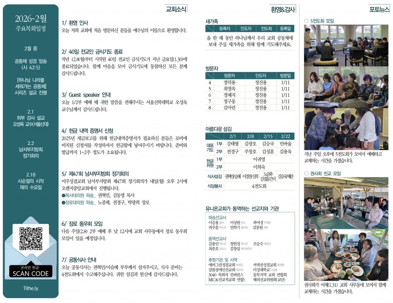 오늘 저희 교회에 처음 방문하신 분들을 예수님의 이름으로 환영합니다.