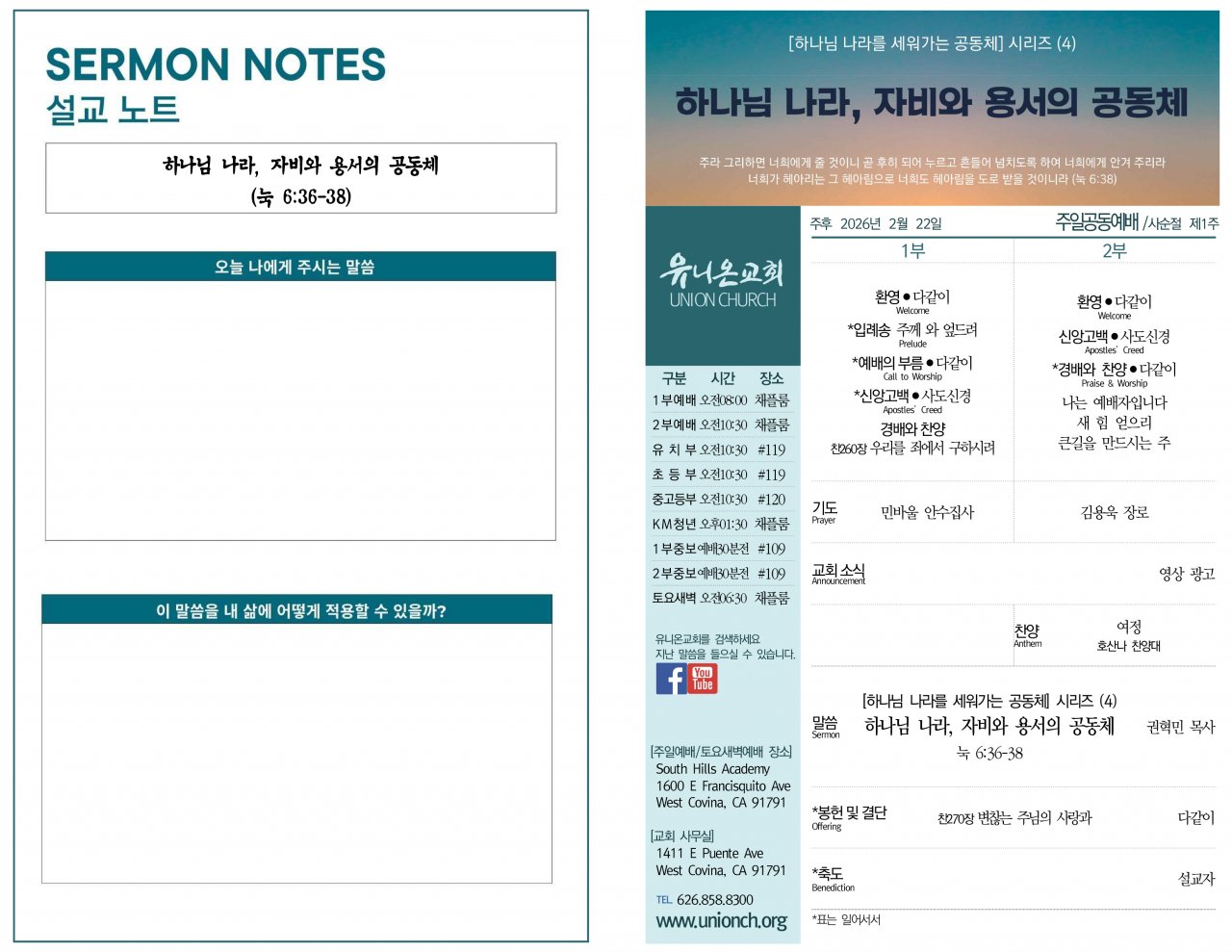 오늘 네 번째 말씀을 통해 자비와 용서로 하나님 나라를 세워가는 공동체가 되길 소망합니다.