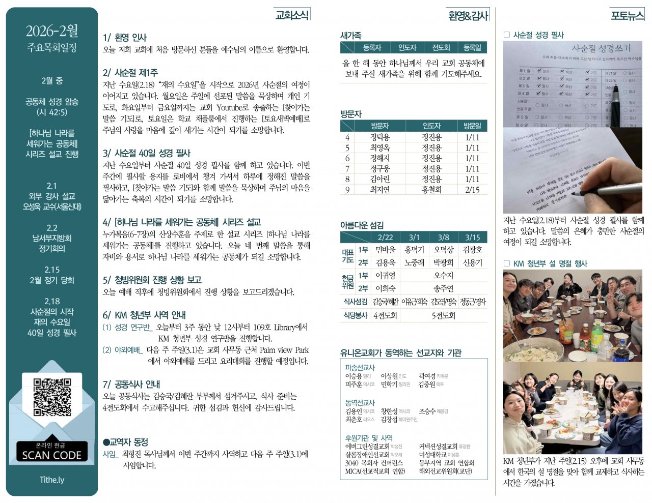오늘 저희 교회에 처음 방문하신 분들을 예수님의 이름으로 환영합니다.