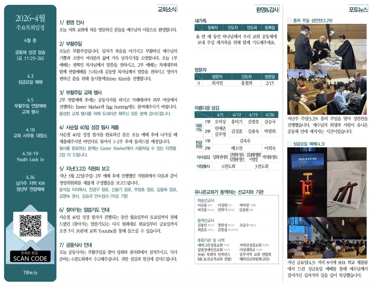 오늘 저희 교회에 처음 방문하신 분들을 예수님의 이름으로 환영합니다.